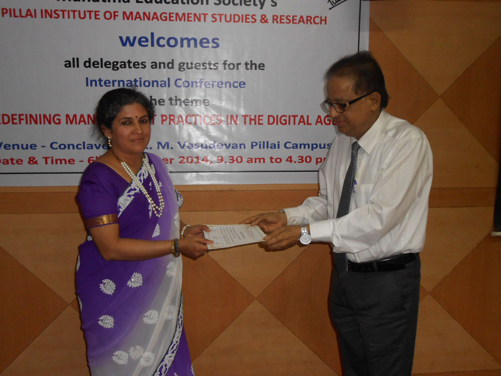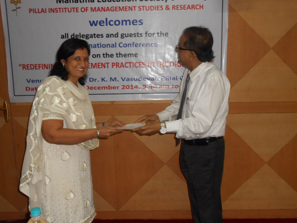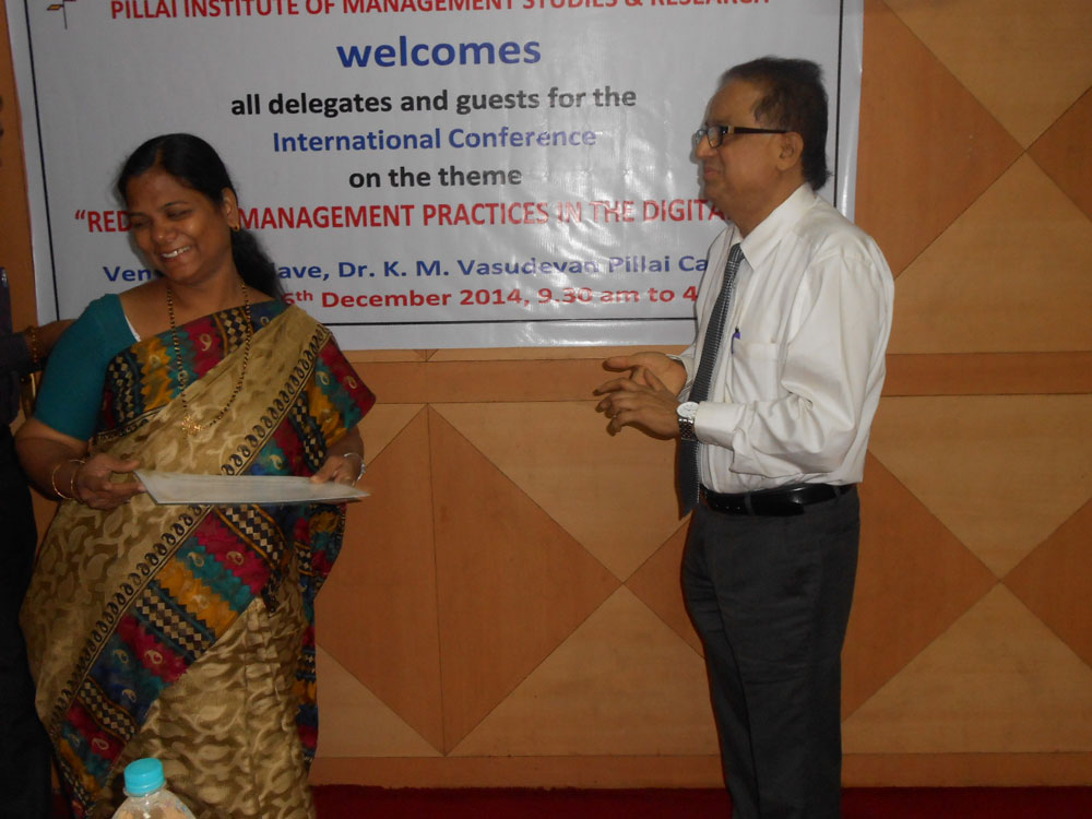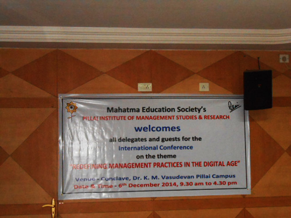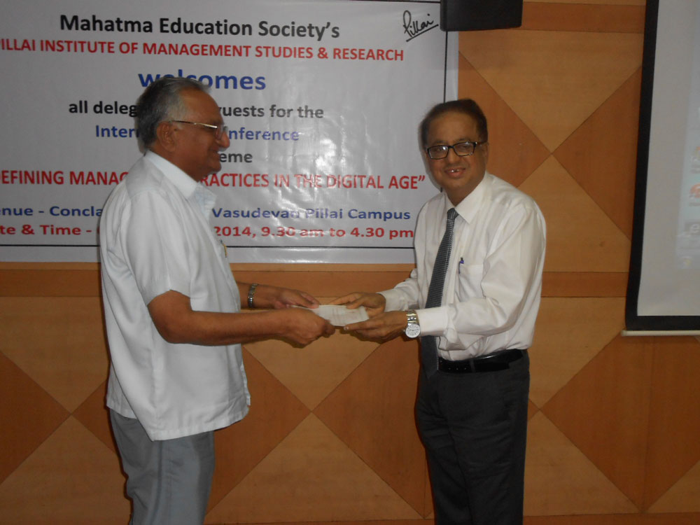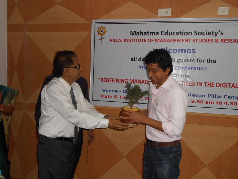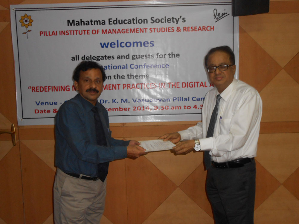 The Research and Consultancy Committee organised an International Conference on “Redefining Management Practices in the Digital Age” on 6th December, 2014 at Dr. K. M. Vasudevan Pillai Campus. Mr. D. M. Katre, President, Reliance Industries Limited, was the Chief Guest and delivered the keynote address. Mr. Faisal Farooqui, Founder, Mouthshut.com and Mr. Ajay Raghav, were the other guests who spoke on the occasion. Ten papers on the topic were presented by faculty members from various management and commerce colleges. The ninth issue of the Pillai Management Journal was also released during the conference.