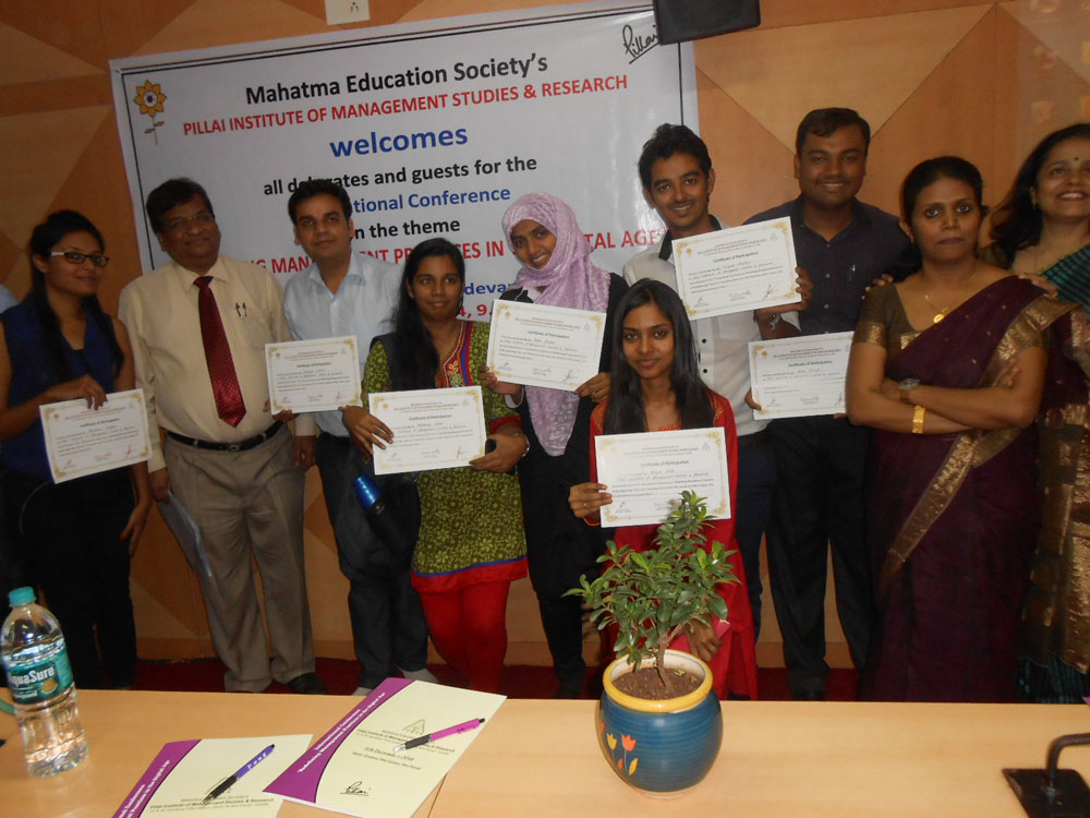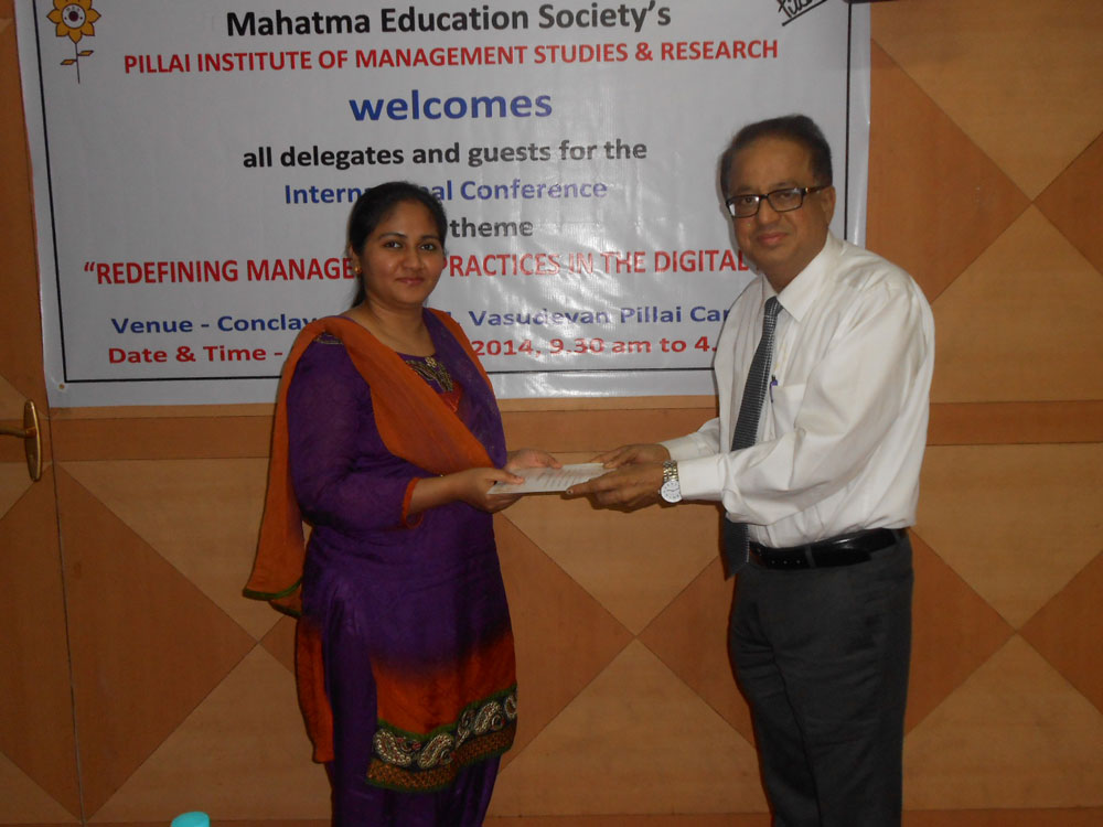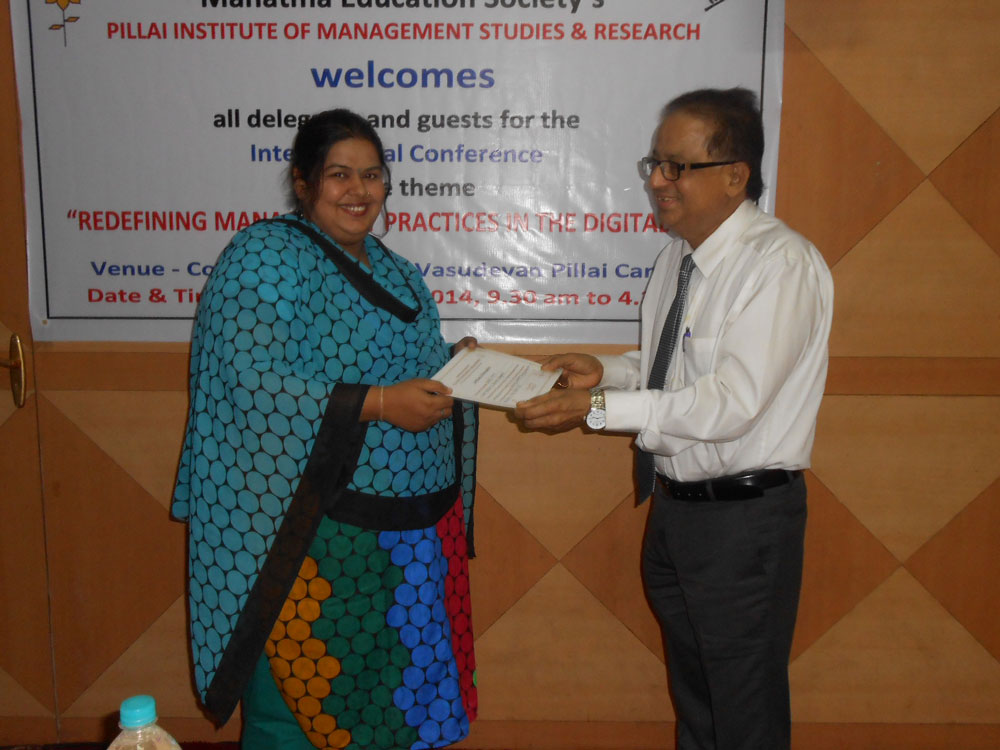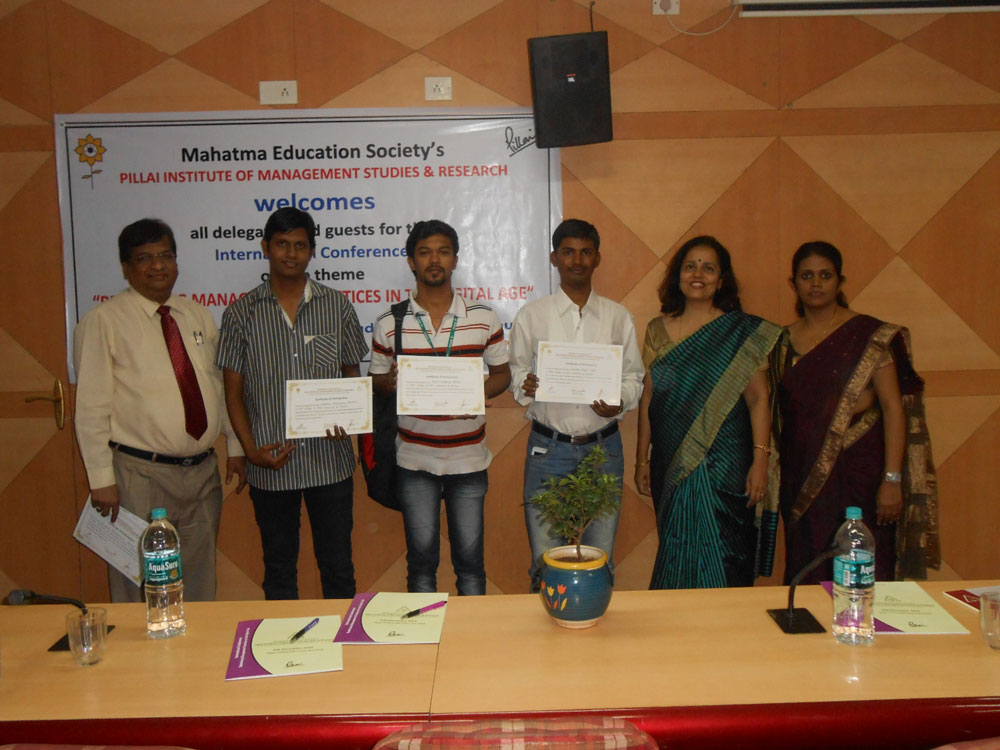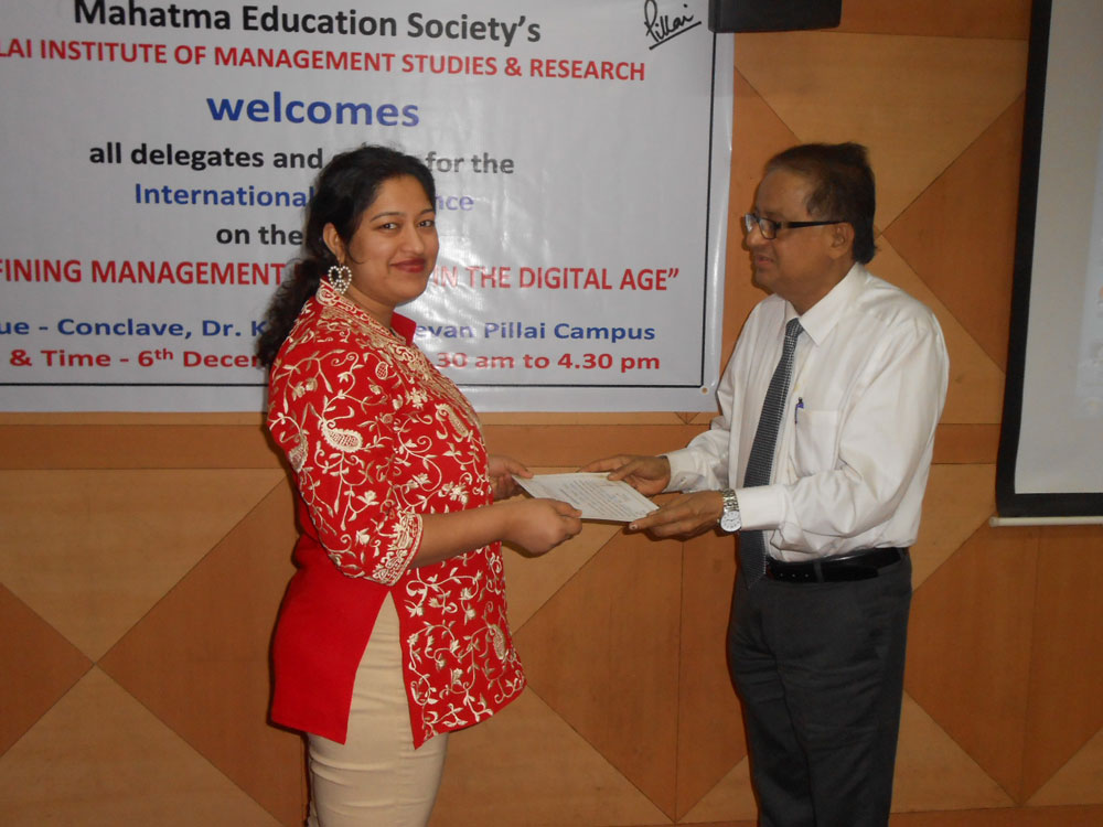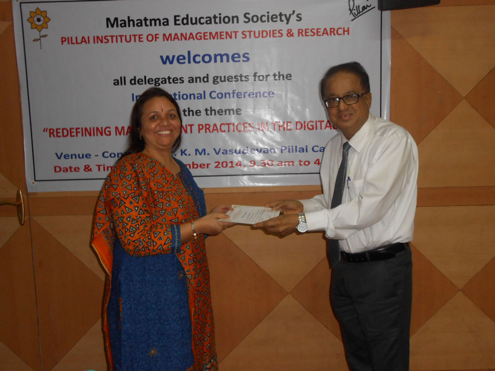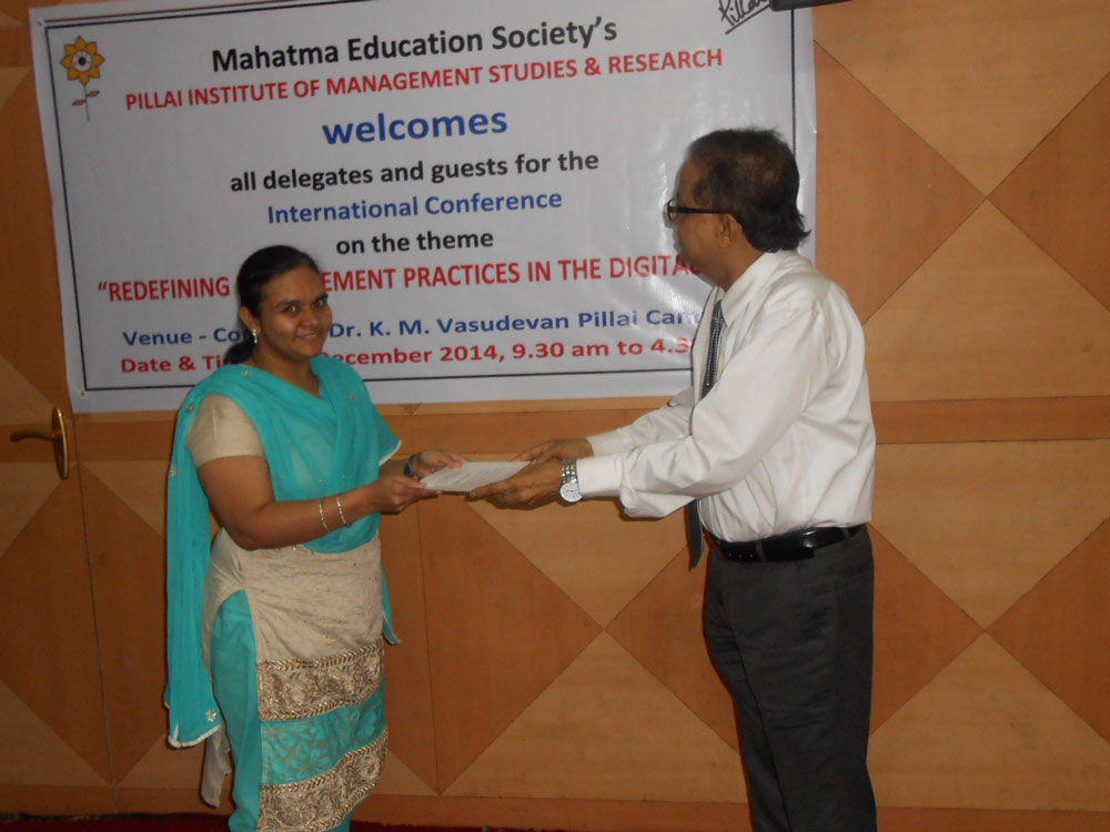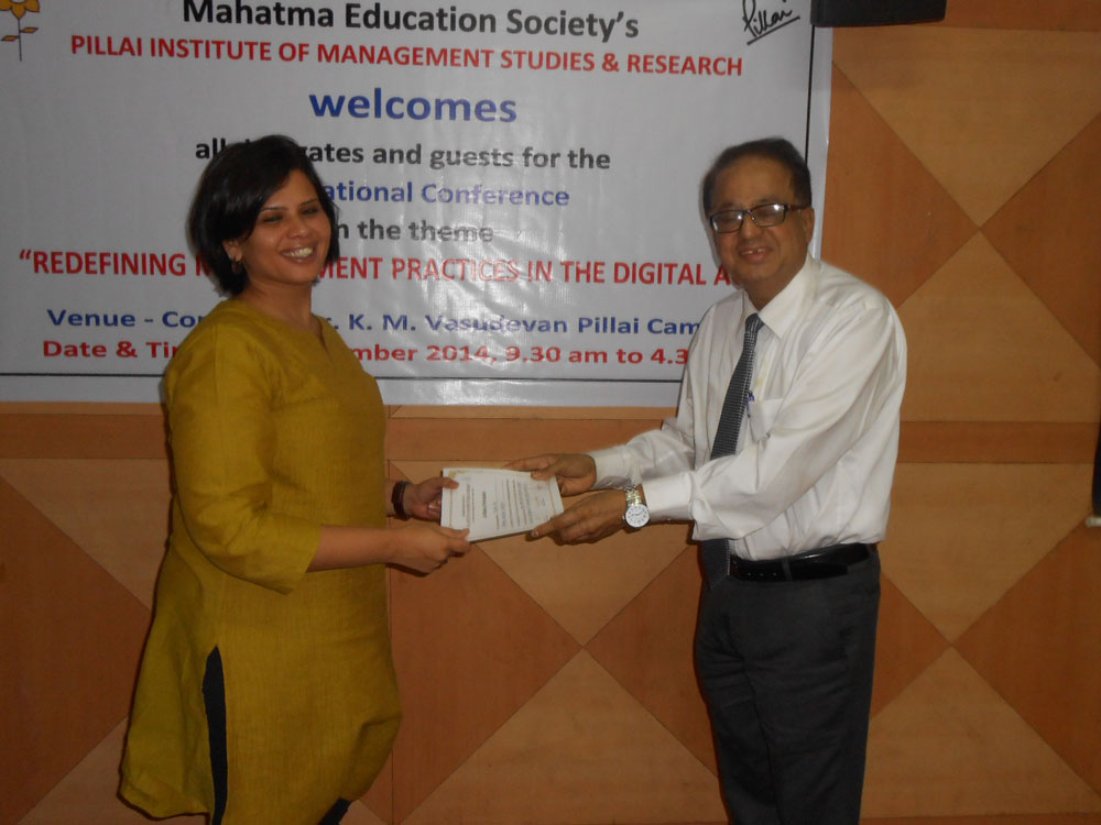 The Research and Consultancy Committee organised an International Conference on “Redefining Management Practices in the Digital Age” on 6th December, 2014 at Dr. K. M. Vasudevan Pillai Campus. Mr. D. M. Katre, President, Reliance Industries Limited, was the Chief Guest and delivered the keynote address. Mr. Faisal Farooqui, Founder, Mouthshut.com and Mr. Ajay Raghav, were the other guests who spoke on the occasion. Ten papers on the topic were presented by faculty members from various management and commerce colleges. The ninth issue of the Pillai Management Journal was also released during the conference.