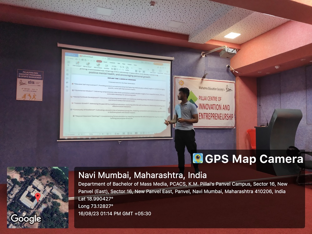 A mentoring session with the various teams of the Business Plan Competition 2023 was conducted by Dr. Celina Joy in her capacity as Innovation Ambassador and Coordinator of the Pillai Centre of Innovation and Entrepreneurship for the participants of the Business Plan Competition from the Panvel Campus. The objective of the session was to guide students to progress to the next round of the competition. One to one meetings preceded by their presentations were held with each team on 16th August, 2023. The session was held to review the ideas and guide the teams to build on their ideas, create prototypes and website preparation. About fifteen teams were present for the same. Dr. Celina Joy assessed their ideas along with Innovation Ambassadors of various colleges and mentored them on the next steps for the quarter finals. About 50 students and faculty members were present for the same. The next round of the competition will be held on 26th September, 2023.