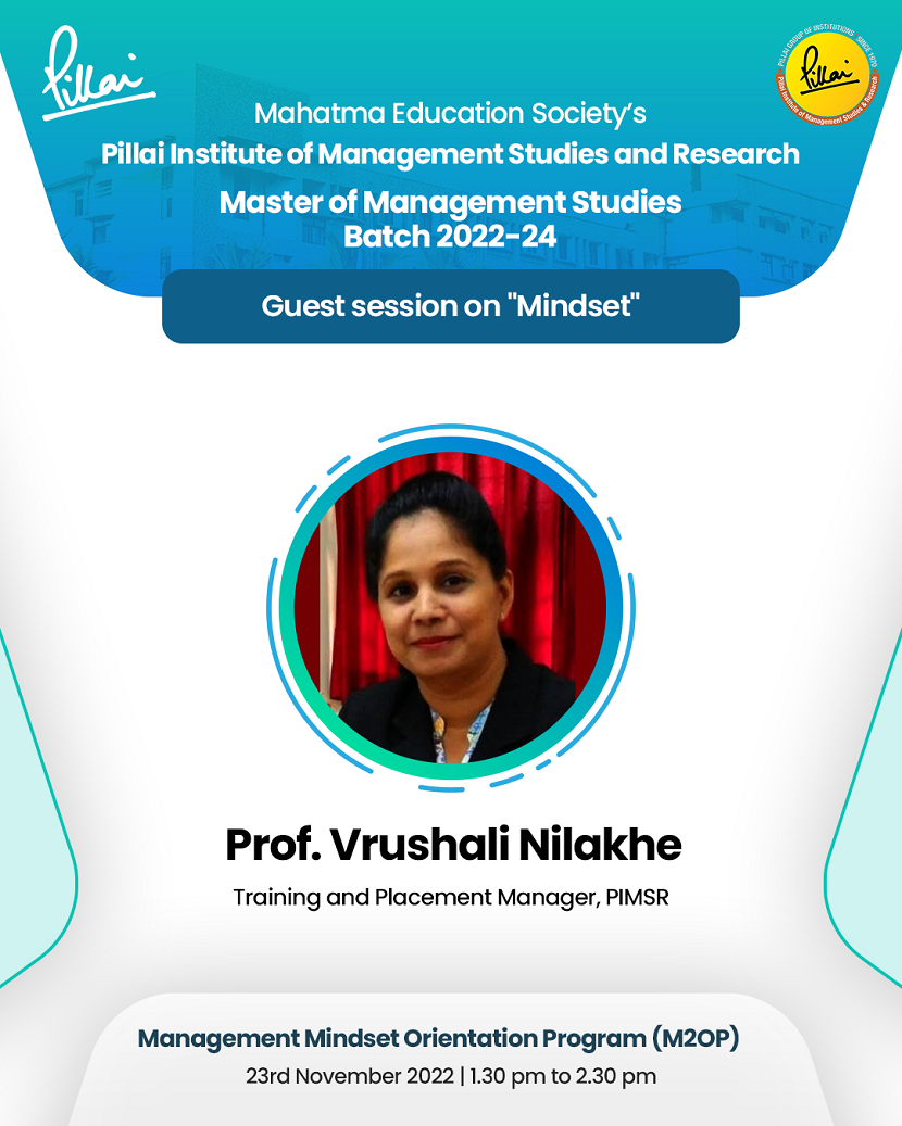 A Session on “Mindset” conducted by Vrushali Nilakhe- Training and Placement Manager for PIMSR first year students.