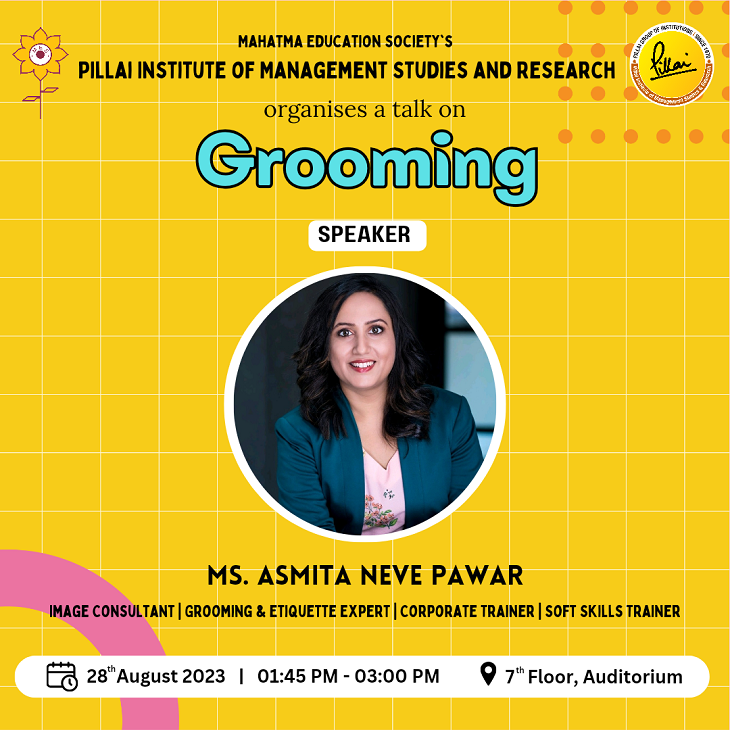 Ms. Asmita Neve Pawar, Image Consultant and Grooming & Etiquette Expert conducted a session for the newly joined management students of PiMSR at the Campus Auditorium on 28th August, 2023 at 1:45 p.m. 164 students attended the session. Ms. Asmita is a dynamic working professional with about a decade of experience. She is a certified Image Consultant, Grooming & Etiquette export & Soft Skill trainer. She is a personal branding expert & helps individuals to build their personal brand. She has impacted over 6500 Individuals with over 100 workshops & coached over 80 senior management professionals. She is also a well-known media personality & featured in leading print & digital platforms such as The Hindu, Mid-Day, Maharashtra Times & many more.
