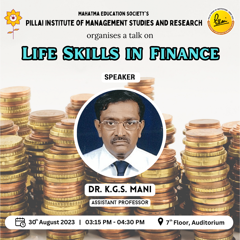 Dr. K. G. S. Mani, Assistant Professor at PIMSR conducted a session on ‘LIFE SKILLS IN FINANCE’ for the MMS students on 30th August, 2023 at 3:15 p.m. at the Campus Auditorium. 53 students attended the session. Dr. KGS Mani is an industry stalwart with over 37 years of banking experience with both public and private sector banks. He started off as a probationary officer, ended his 27-year stint with SBI as an assistant general manager, and followed it with another successful stint with Belgium Bank, working both in India and Belgium. Post-retirement, he began his academic career and has been associated with PIMSR for the last nine years as a senior finance faculty member. He has multiple postgraduate degrees and diplomas, which include M.Com. Management and M.Com Accounting and Finance, MBA in Finance, MIM, PGDFM, CIIB, etc., to name a few. He also has a PhD in management. Dr. Mani is adept at handling all the finance-based subjects, including financial management, corporate valuation, security analysis, portfolio management, and many more.