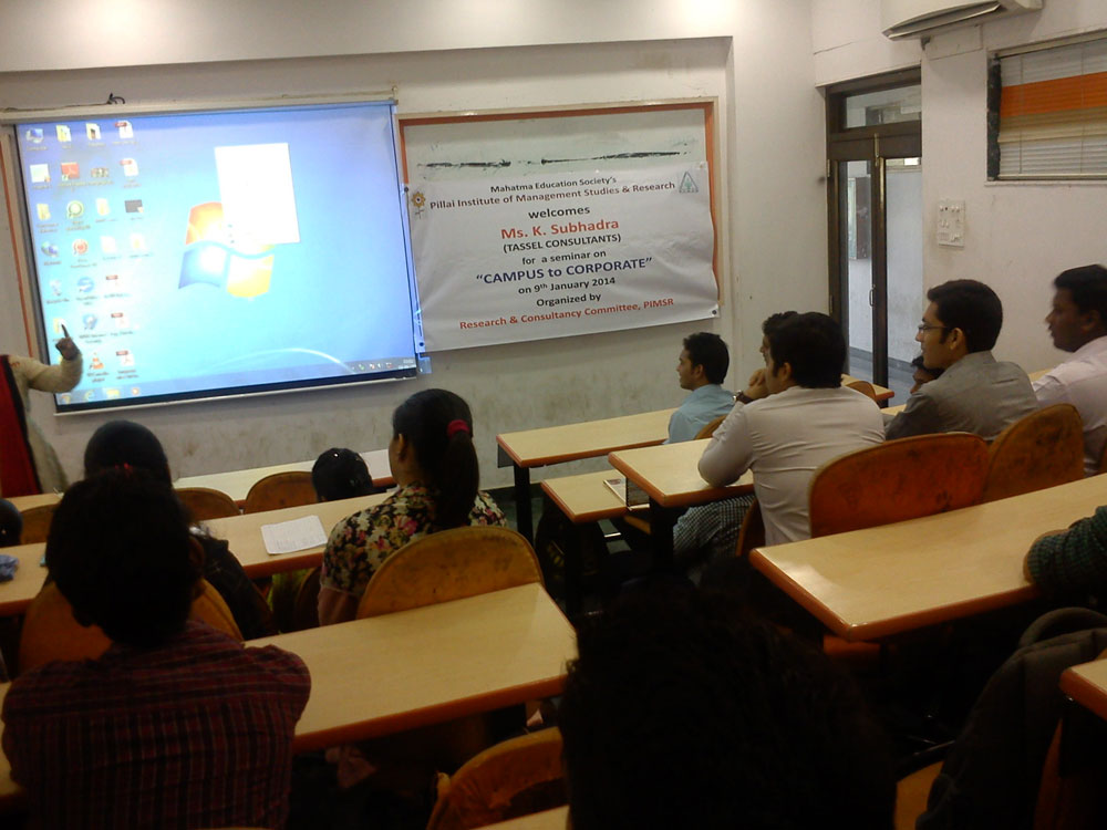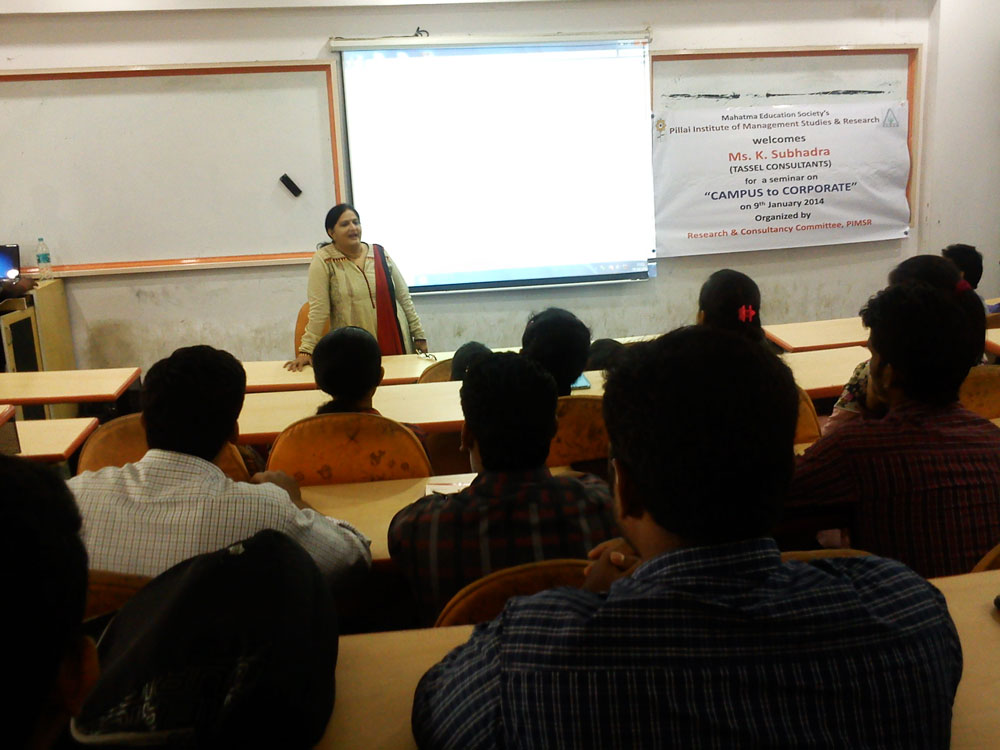 The Research and Consultancy Committee of PiMSR organised a Soft Skill Seminar titled “Campus to Corporate” for the first year MMS students as a part of student development initiatives on 9th January, 2014.