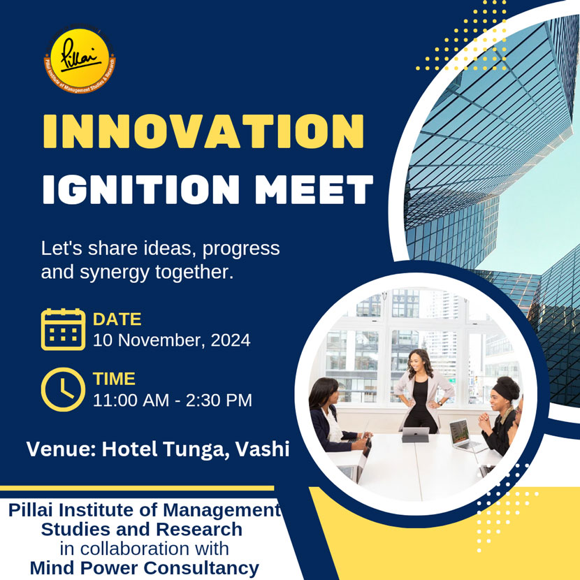 In a world where innovation drives progress, a unique gathering took place on 10th November, 2024. At the heart of this event was a shared mission: to ignite minds, bridge gaps, and create meaningful connections between academia and industry. Hosted at the elegant Hotel Tunga in Vashi, Navi Mumbai, this was no ordinary event. It was the Innovation Ignition Meet, a joint initiative between the Pillai Institute of Management Studies and Research (PIMSR) and Mind Power Consultancy.