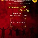 PiMSR FY students has organised a virtual farewell party and welcomes you to bid adieu to the batch of 2021 on 13th June, 2021 @ 5 p.m. You are cordially invited to Join us in lieu and make this farewell memorable. It will be an evening of fun, laughter, farewell speech and sweet memories.